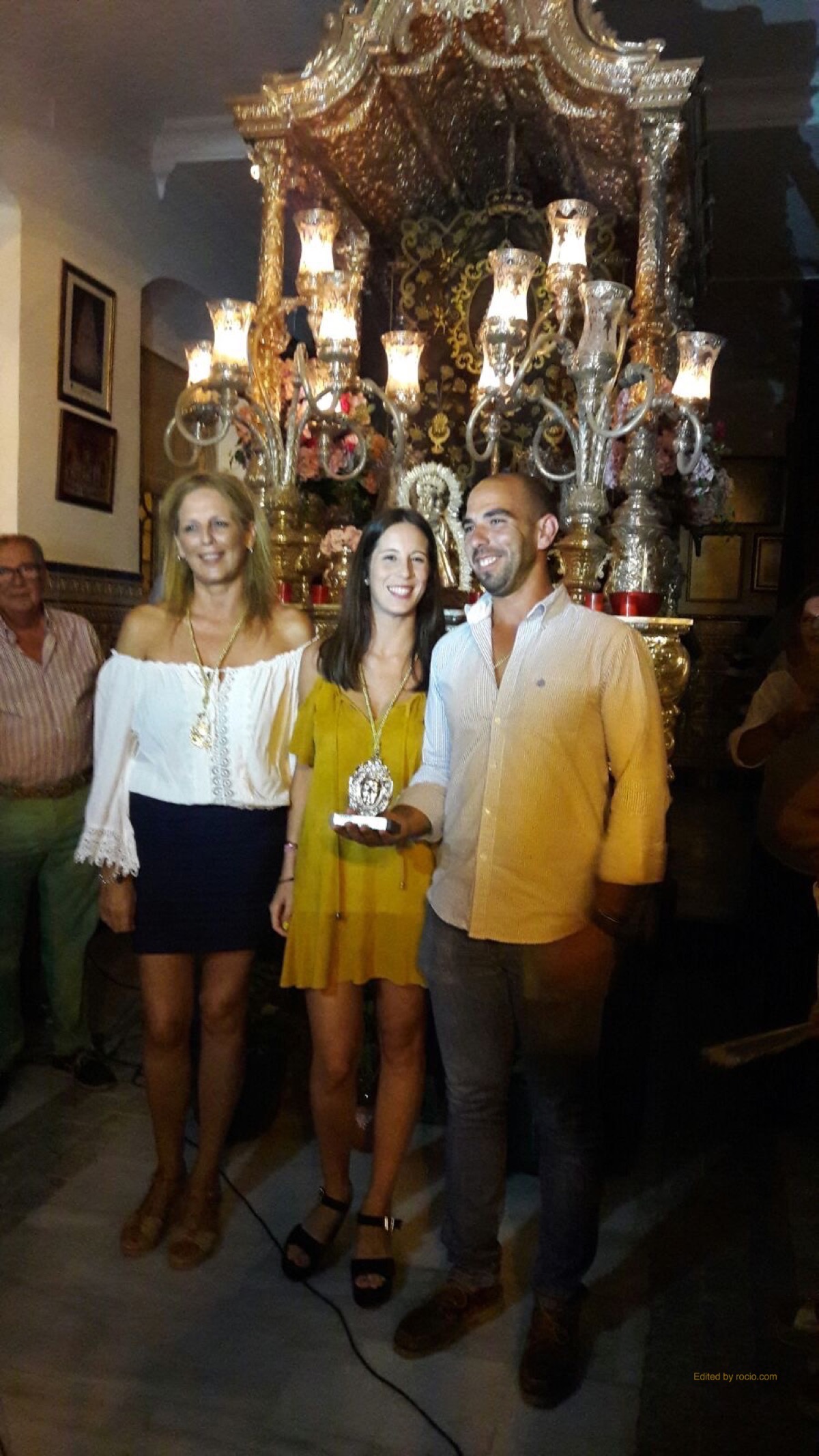 Abel del Grupo Kalandraque, recibe de manos de las Hermanas Mayores un recuerdo de la Hermandad