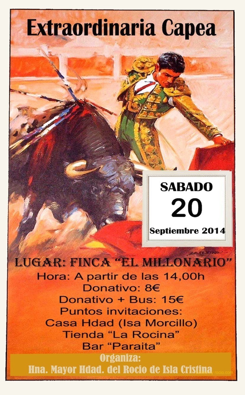 Hermandad de Isla Cristina – La Hermana Mayor organiza una extraordinaria capea el próximo 20 de septiembre.