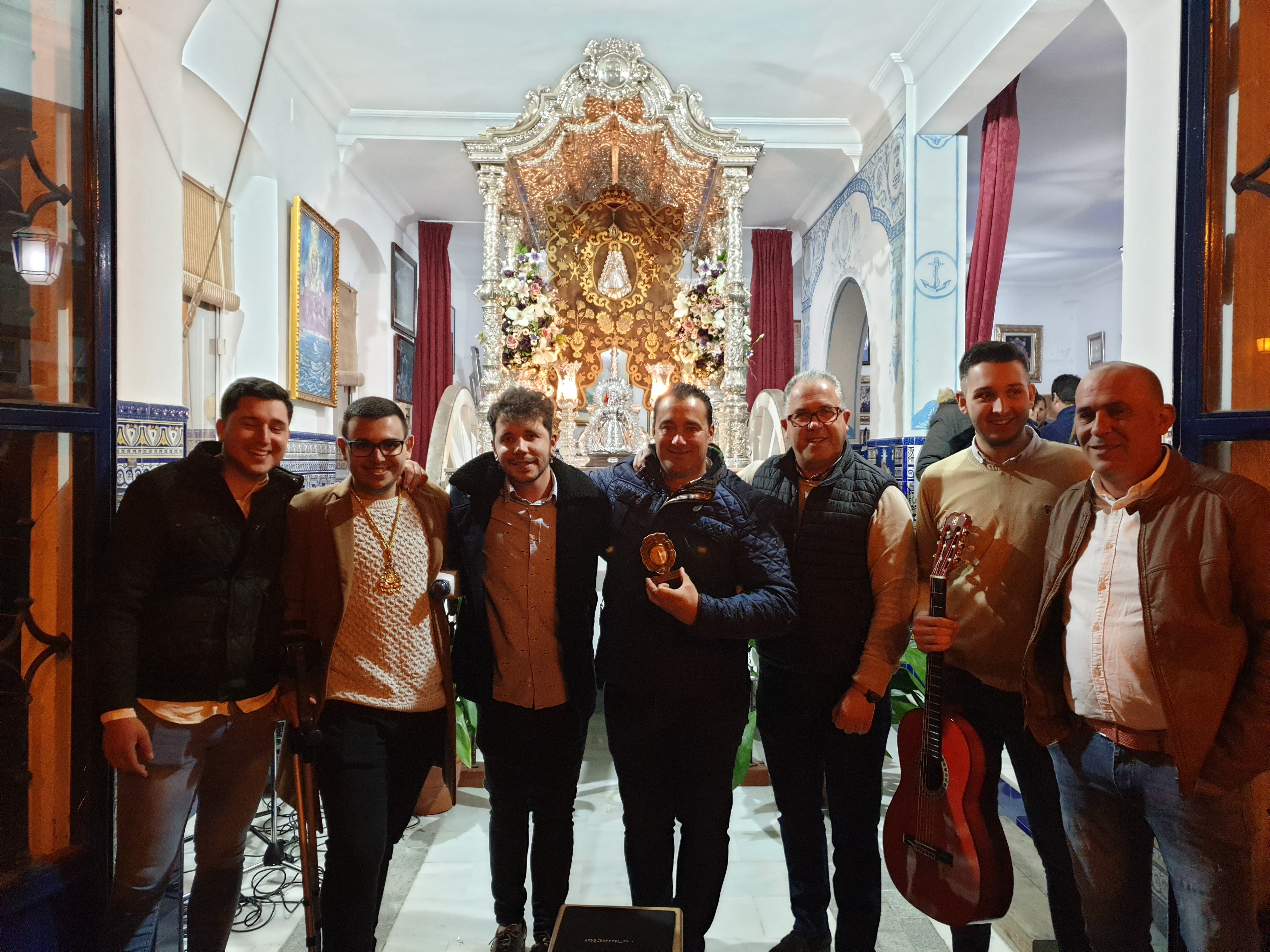 Maravillosa actuación la realizada por el grupo de amigos formado por Francisco Sequera, Francisco Álvarez, Ramón Rodríguez, Iván Barberi y Jeray Sosa el pasado viernes día 6 demarzo a las puertas de la Casa Hermandad del Rocío de Isla Cristina cuando, como siempre, al toque de campana, se anunció el canto de la Salve al Simpecado y tocando la guitarra Iván y el cajón, Jeray, comenzaron a entonar las primeras notas de la Salve Rociera que José Antonio Monclova compuso para nuestra Hermandad. Sin duda alguna, auténtica oración a la Madre de los rocieros.