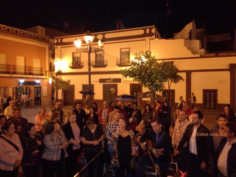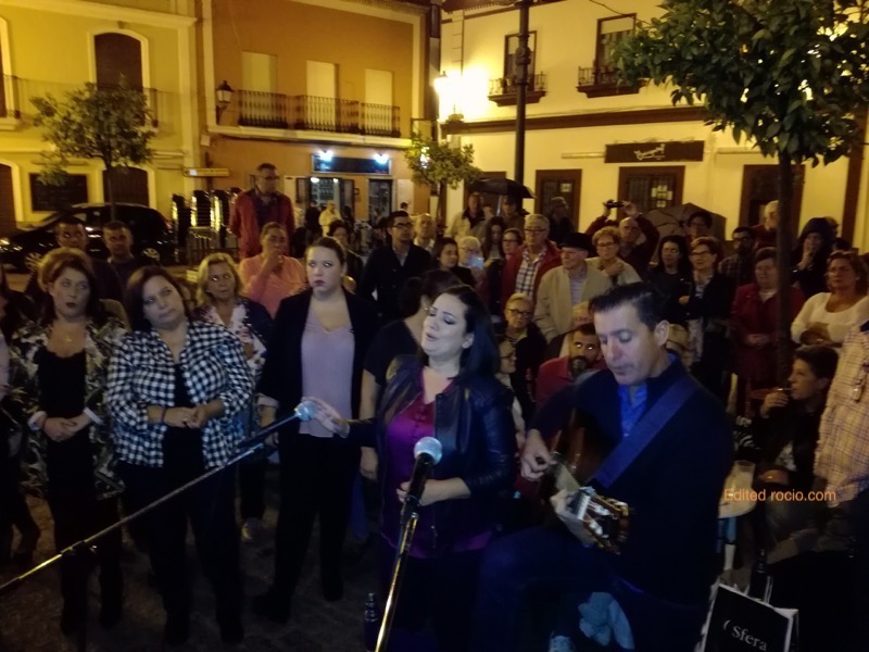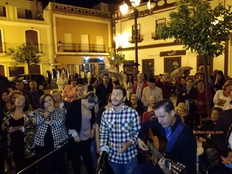 Y como siempre, después de los aplausos y de los vivas a la Madre de Dios, vinieron las sevillanas. Primero unas interpretadas individualmente por Gemma Abreu, Paquito y María Seren y, luego, por todo el Grupo, uniéndose a ellos todos los que allí estaban, ya dentro de la Casa por las inclemencias del tiempo, pero que hicieron que se vivieran esos ratitos de Rocío tan intensos entre todos y todas.