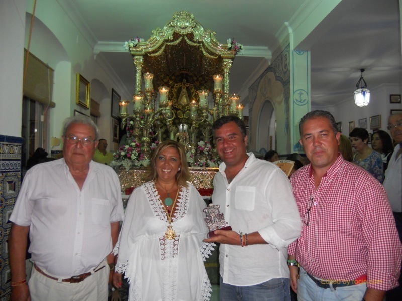 Contamos esa noche con la grata presencia del Hermano Mayor de la Hermandad del Rocío de Carmona, a quien el Presidente de la Hermandad le hizo entrega de un Simpecado en recuerdo de su paso por nuestra Casa.