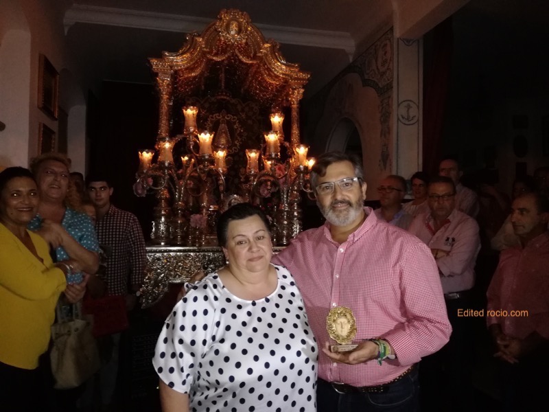 En las imágenes podemos contemplar distintos momentos del canto de la salve y las sevillanas, así como cuando Isabel Perera, Vocal de Cultos de la Hermandad, le hace entrega a Paco González de un recuerdo de la misma y también ante el Simpecado acompañados, ambos, por el Presidente de la Hermandad, Pedro Jesús Álvarez.
