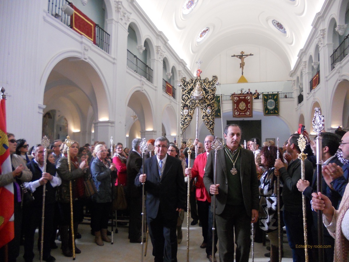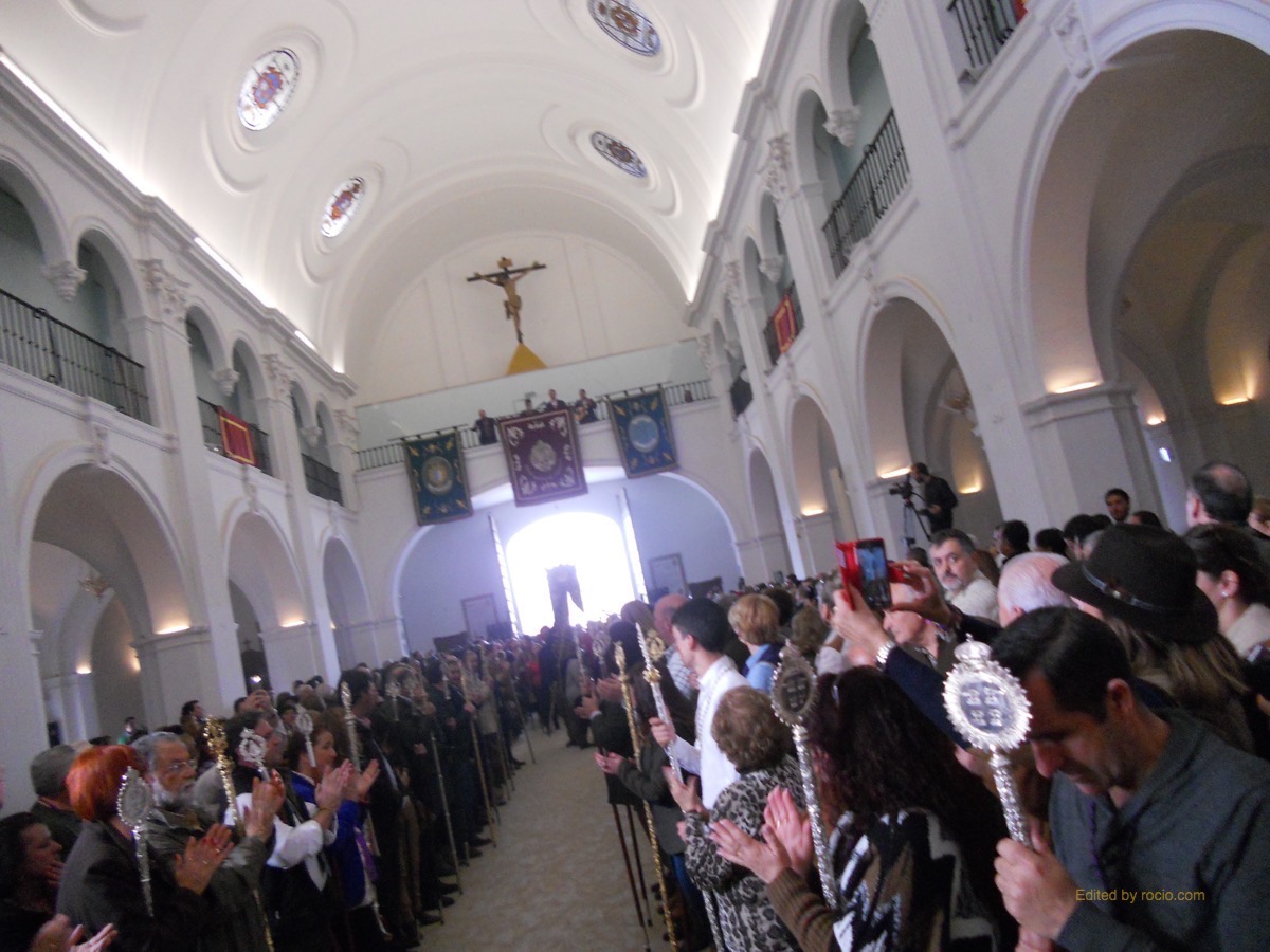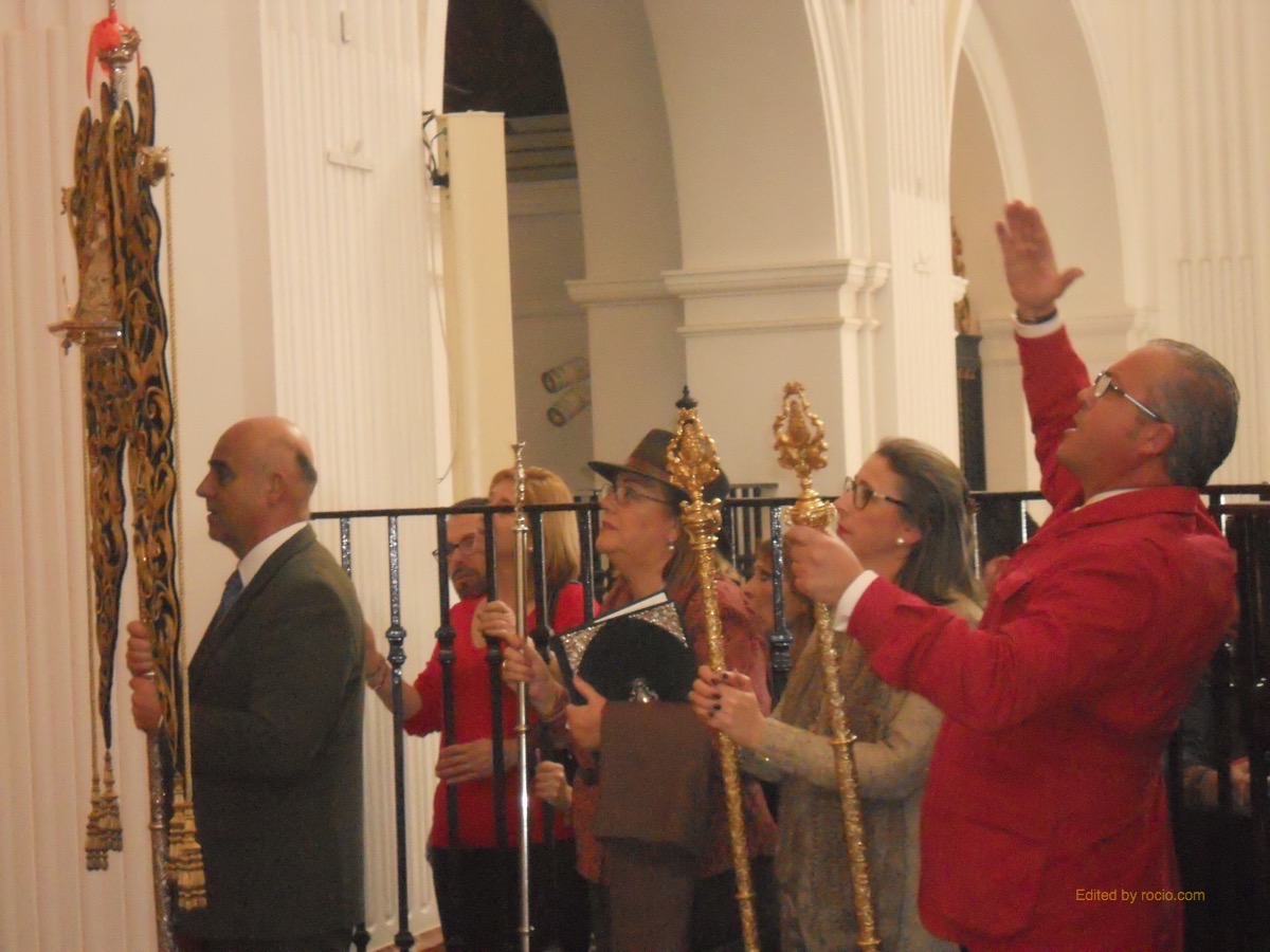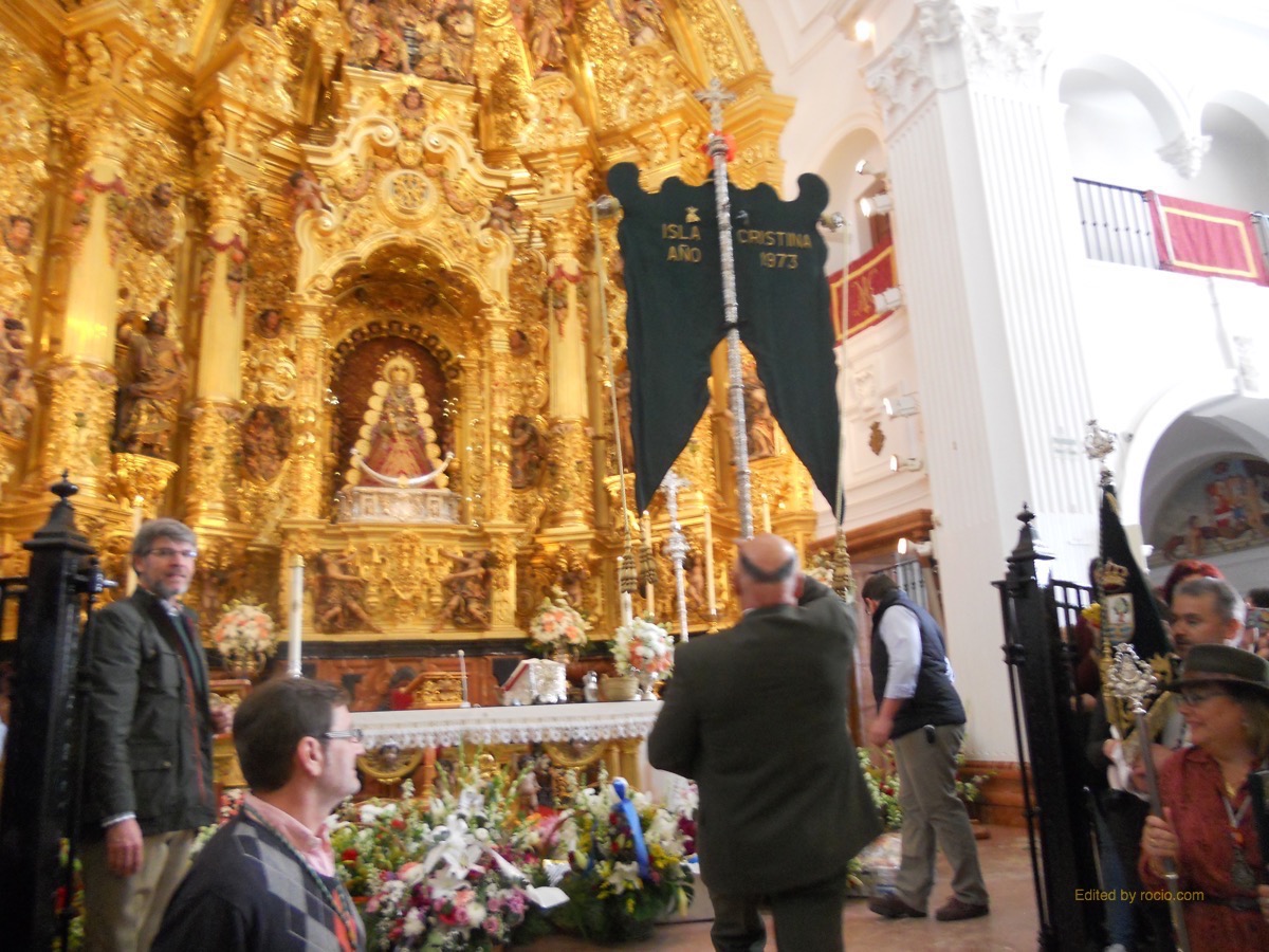 Al toque de palmas, el Simpecado hizo su entrada en la ermita acompañado por las Hermandades Sacramentales y Cautivo de Isla Cristina, las de la Bella de nuestro pueblo y de Lepe y por Hermandades rocieras como Cartaya, San Juan del Puerto, Villalba, Villarrasa, Gibraleón, Punta Umbría, Ayamonte, Moguer, etc.., destacando en su lugar la Hermandad del Rocío de Medina del Campo con su Presidente y Hermana Mayor a la cabeza.