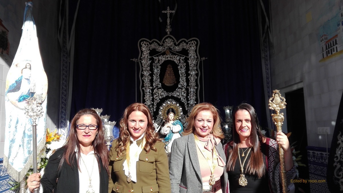 Desde estas líneas queremos agradecer a la Presidenta de la Hermandad de Palos, Fermina, por la acogida tan cariñosa que tuvo hacia nuestras Hermanas Mayores y, especialmente, a la Hermana Mayor de Palos, la joven Ana García Benítez, que estuvo durante la convivencia que se celebró tras la Santa Misa en la Casa Hermandad, muy pendiente de la representación de nuestra Hermandad.