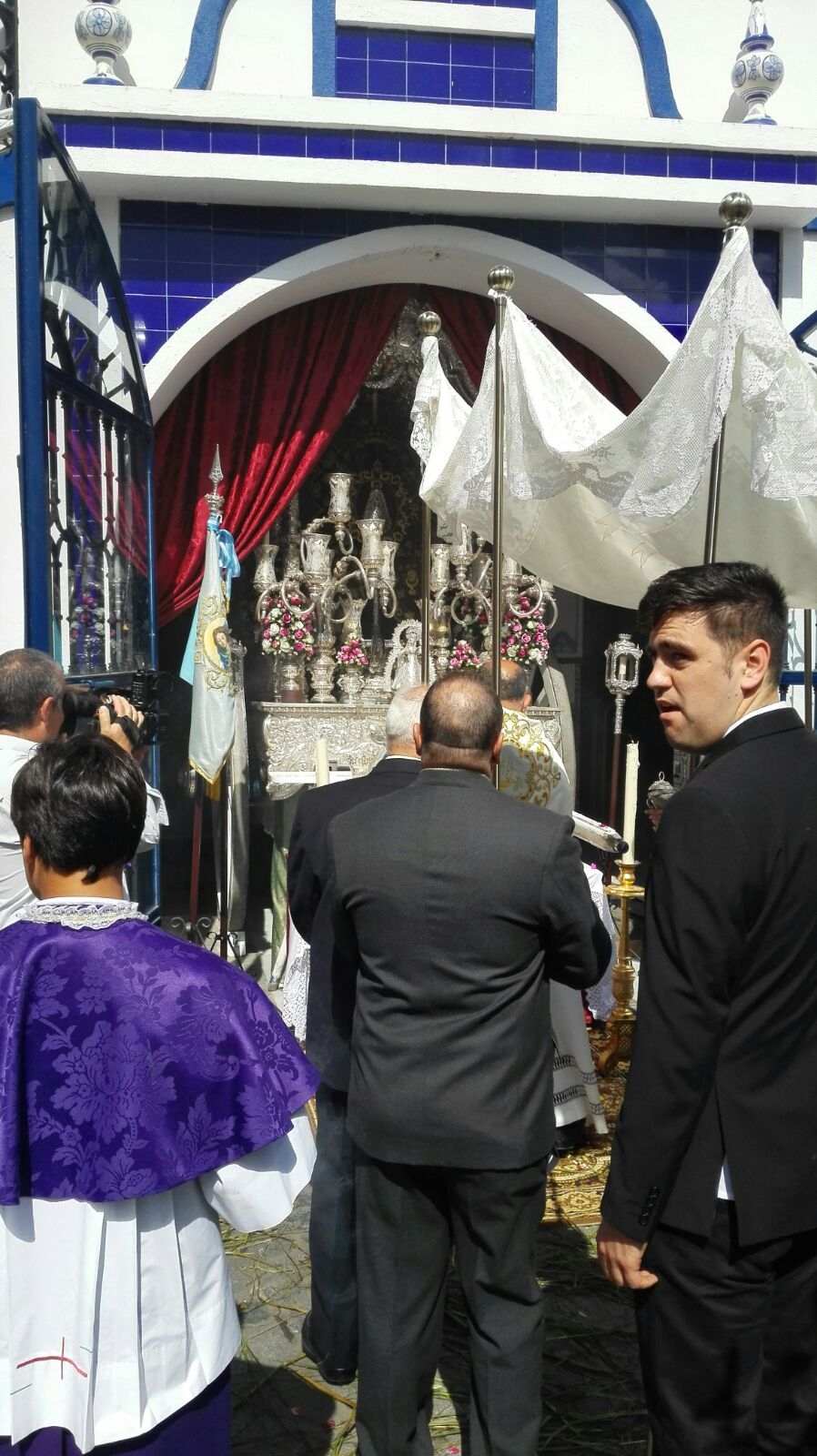Y así, en nuestra Casa Hermandad, en la Plaza de San Francisco, con nuestro querido y viejo Simpecado, se situó el descanso en el que D. Juan Luís Vázquez, Director Espiritual de nuestra Hermandad, colocó al Santísimo para su adoración.