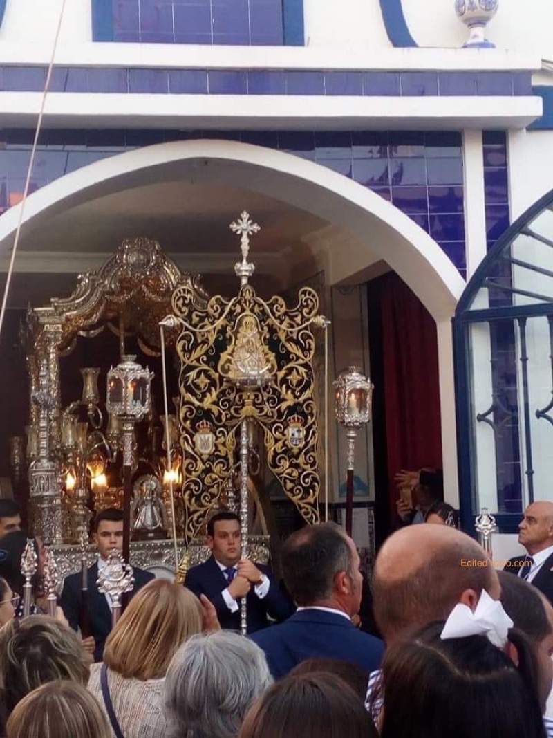 Por ello, un gran número de hermanos y hermanas de la Hermandad acompañaron al Simpecado en la Procesión del último viernes de mayo que lo llevaba desde la Parroquia de Los Dolores hasta la Casa Hermandad para entronizarlo en la Carreta.