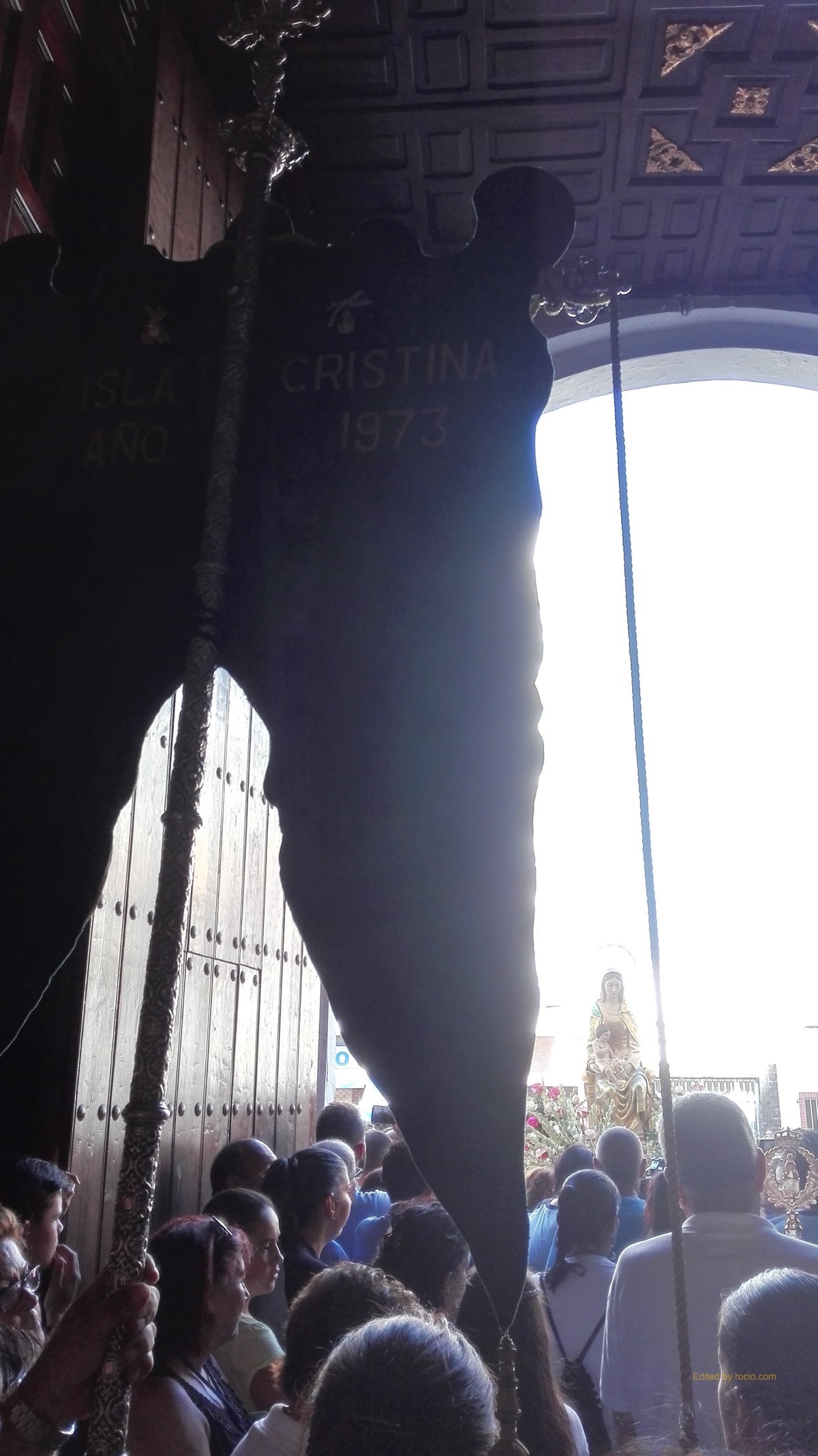 Un año más, a las puertas de la Parroquia de Los Dolores de Isla Cristina, el Simpecado de la Hermandad del Rocío se posicionó para esperar a la hermosa Virgen del Mar que venía cargada por las mujeres de la Punta del Caimán. Y este año todavía más especial, si cabe, ya que a los pies de nuestro Simpecado estaban nuestras Hermanas Mayores, Ana y Esperanza, ambas muy devotas de la Virgen del Mar ya que son ambas de La Punta. Así que la emoción y el llanto estuvieron todo el tiempo a flor de piel ya que es difícil expresar en palabras ese momento de encuentro de las dos advocaciones de la Madre de Dios. Y no olvidemos que, también están la Virgen del Carmen y la Patrona de Isla Cristina, la Virgen del Rosario, esperando la llegada y teniendo también ese encuentro con la Virgen del Mar.