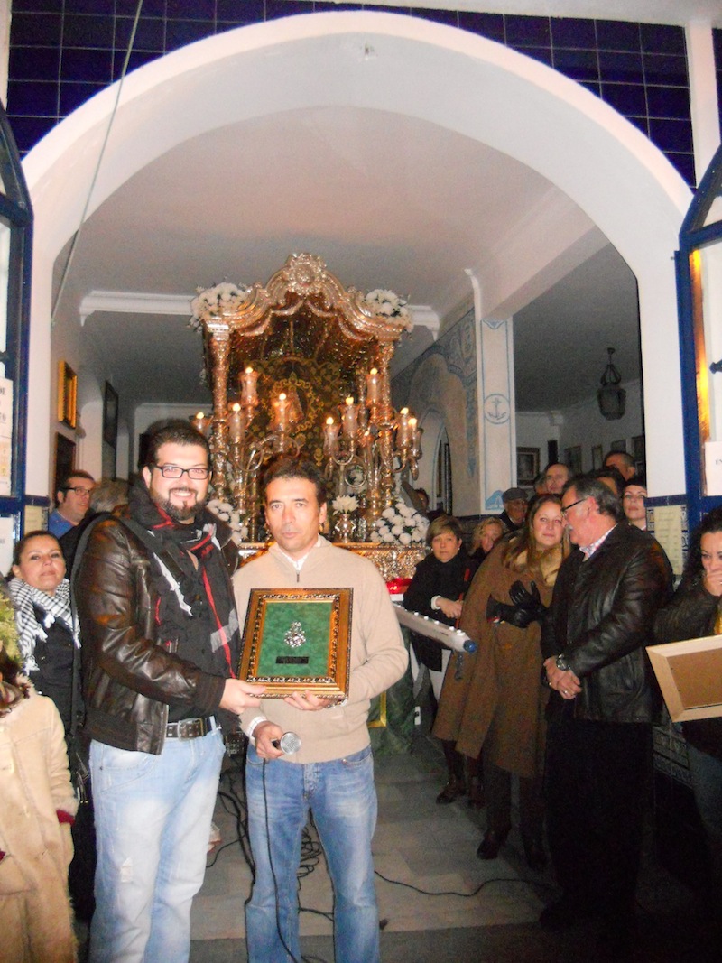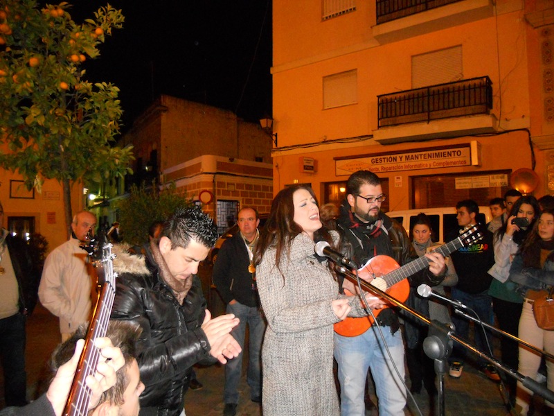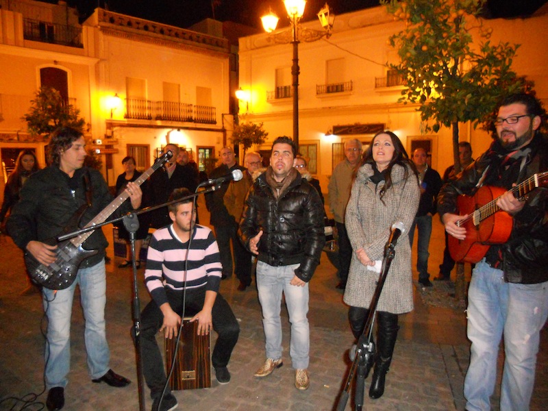 Y, como siempre, a la hora estipulada, la Casa Hermandad quedó a oscuras y sólo a la luz de las velas que iluminan al Simpecado y con el silencio absoluto que reina en la Plaza de San Francisco cuando llega el momento, el Grupo "PALOSANTO", formado por Juan Luís Acosta (guitarra), José Antonio Columé (Bajo), Pepe Pérez (Caja) y Jorge Puerto y Mariví Sánchez, comenzó a cantar la Salve conocida de Los Romeros de la Puebla siguiendo con un grupo de sevillanas que cantó sola Mariví y que hizo que ese silencio de respeto que se vive se rompiera por la fuerte ovación que recibieron y todo el mundo se olvidara de la fría noche que se estaba viviendo en Isla Cristina.