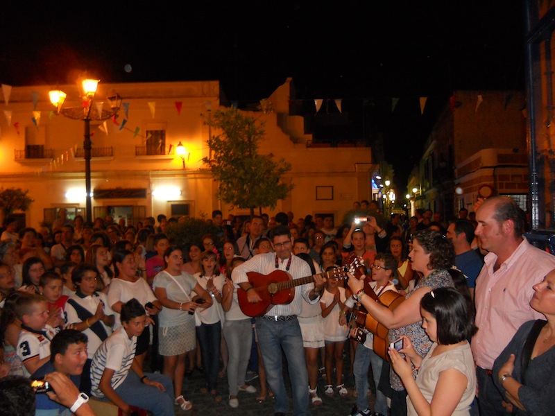Tal y como ya se había anunciado, las puertas de la Casa Hermandad del Rocío de Isla Cristina se abrían de nuevo para el canto de la Salve al Simpecado. ¡Y no podía empezar de mejor manera que con una amplia representación de niños y niñas de nuestro pueblo!. Y decimos "amplia representación" porque son cuarenta los que componen el "Coro de niños y niñas del Colegio Público de Nuestra Señora del Carmen" y que a las doce la noche, frente al Simpecado, se colocaron todos, a las órdenes de Rocío Mascareña y Marita Virrella, para interpretar una Salve Rociera creada por el mismo Coro. El subdirector del colegio, además de muchos padres y madres, acompañaron a este grupo de niños que levantaron la plazoleta en una fuerte ovación, máxime cuando interpretaron unas hermosas sevillanas que ya dedicaron a la Hermandad el día de la salida para la Romería 2013; unas sevillanas creadas también por el propio coro y que en sus letras animan a los peregrinos para que hagan un camino en hermandad que les lleve hasta la Aldea para estar con la Señora.