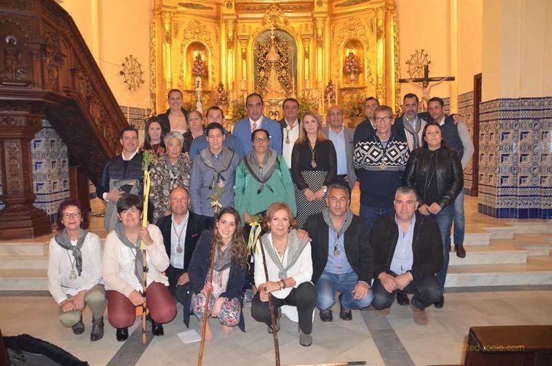 Destacó, también, que hiciera partícipes a Sandra, María, Joaquín y Nacho Vinagre con la guitarra, con oraciones cantadas y, sobre todo, que una amplia representación de muchos de los que Carmelo ha contagiado su entusiasmo para que hagan el camino a pie, se acercaran hasta el Altar con sus varas de camino, culminando con el canto de la Salve de la Hermandad.