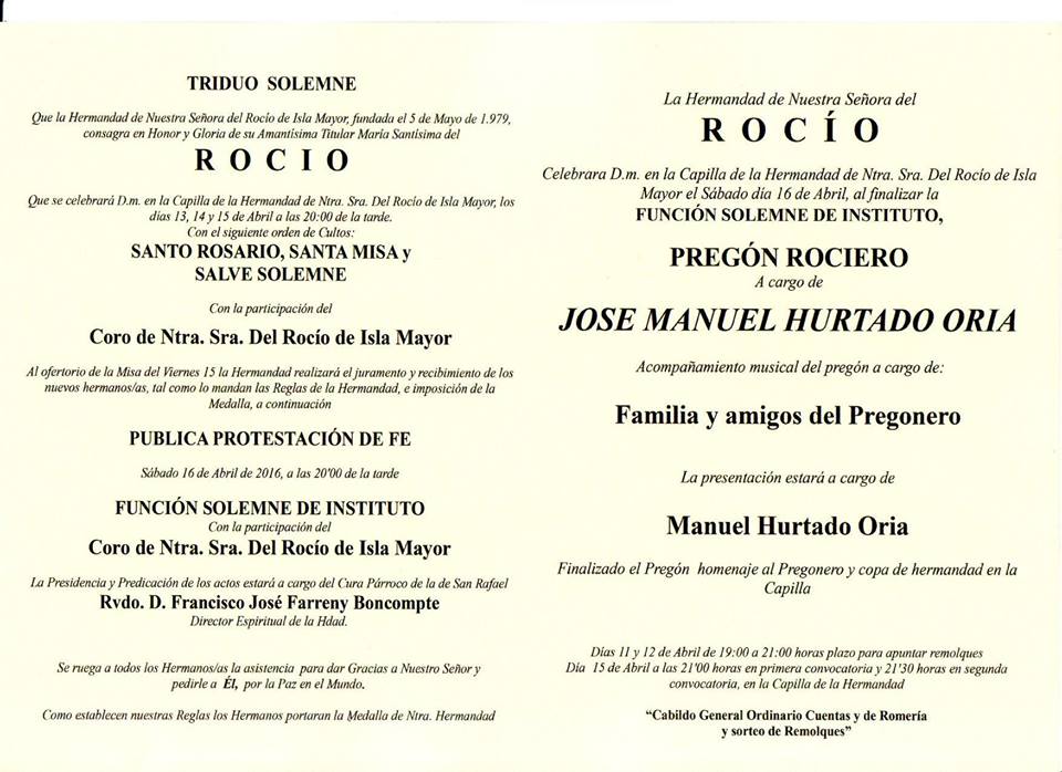 Hermandad de Isla Mayor – Solemne Triduo y Pregón a cargo José Manuel Hurtado Oria