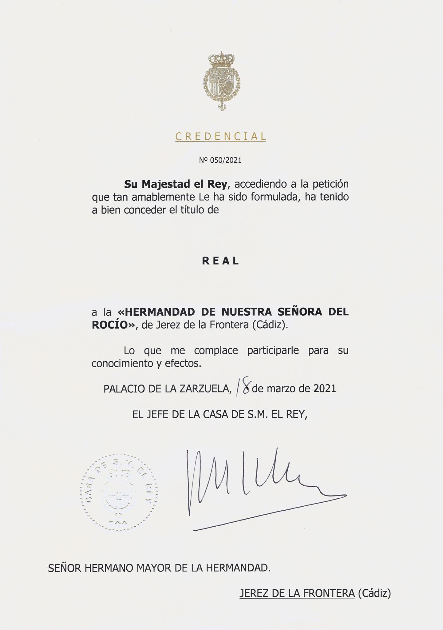 Hermandad de Jerez – El Rey, Felipe VI, concede el título de Real a la Hdad.