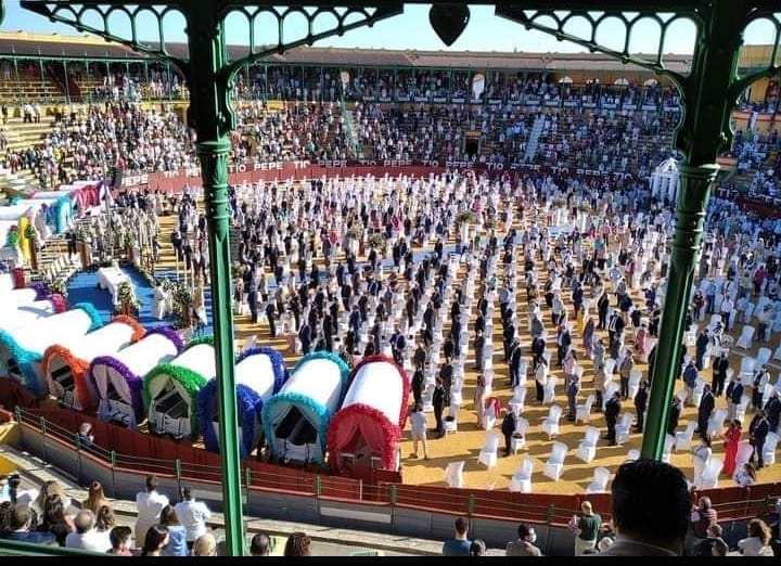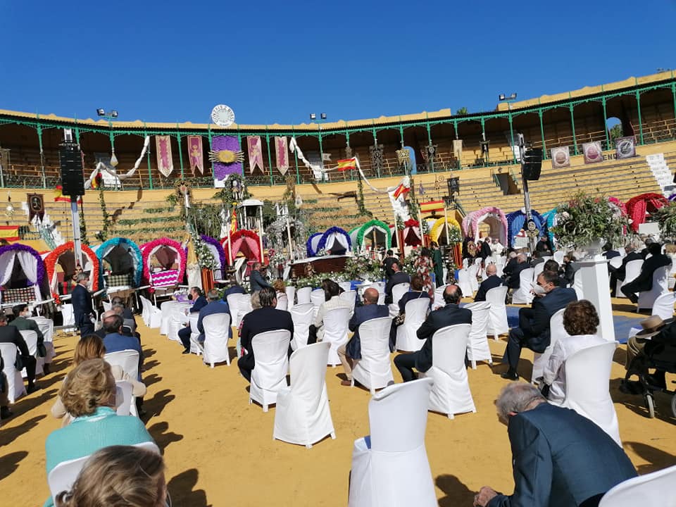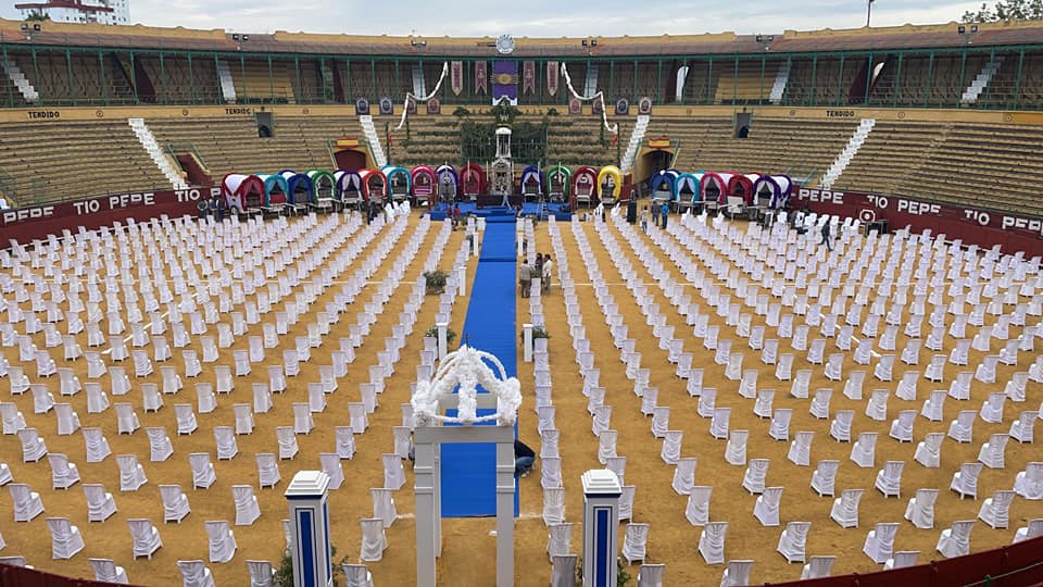 Orgulloso de mi Hermandad de Jerez. Hoy justamente cuando se cumplen dos años de que La Virgen amanecía vestida con el terno del centenario que ofreciera esta ciudad, Jerez se dispone a celebrar Pentecostes con un solemne pontifical que se celebra en La Plaza de Toros y que cumpliendo todas las medidas de seguridad reunirá a más de 4000 rocieros jerezanos. Viva La Virgen del Rocio!! Viva Almonte y viva La Hermandad de Jerez!!