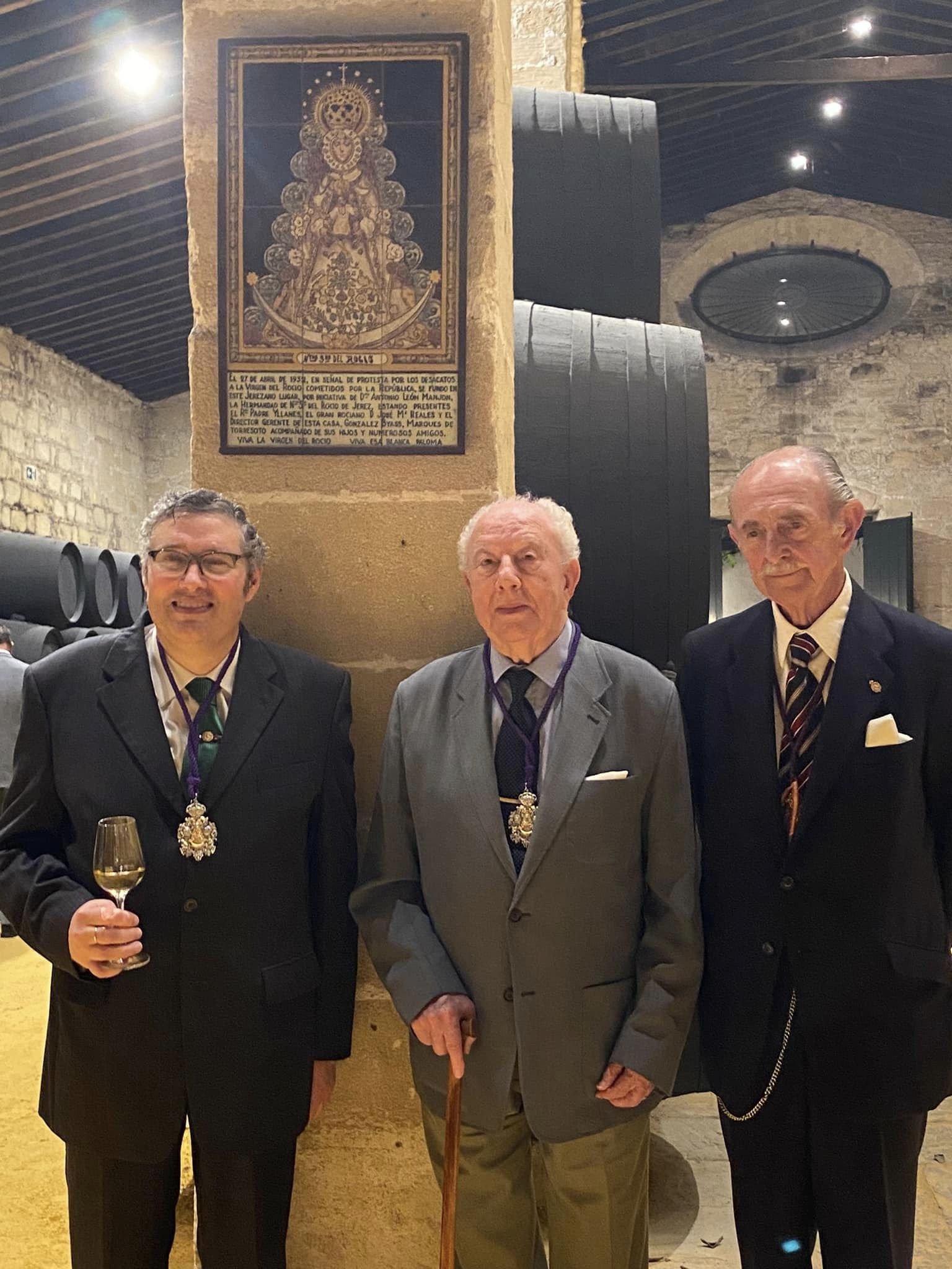 De los muchos momentos que guardaré para siempre en mi corazón, tras tener el honor de pronunciar el Pregón del Rocío de Jerez el pasado viernes 5 de mayo de 2023, es el que refleja esta primera foto, para mí cargada de sentimientos y emociones. Estamos en la Bodega de los Reyes, el lugar donde se fundó la Hermandad de Jerez, en 1932. En ella estamos cuatro generaciones de mi familia; el primero aparece en el cuadro, que recuerda la fundación de la Hermandad, mi tío abuelo José María Reales Carrasco, que fué uno de los fundadores de la Hermandad de Jerez. Y conmigo, están mi padre, Manolo Reales y mis hijas, Rocío y Pilar.