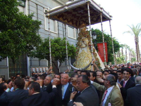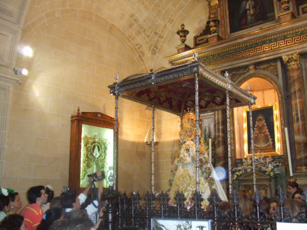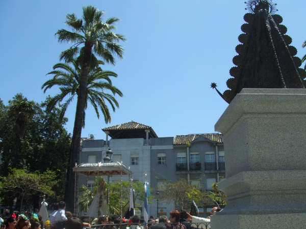 Yo estuve alli, y la verdad es que se vivieron momentos en los que parecia enteramente Almonte: Agarrones para llegar a la Virgen, niños en volandas, ellas vestidas de gitana, cohetes y tamboriles, hermandades filiales presentes (Sanlucar, Arcos…). Fue muy muy emotivo..