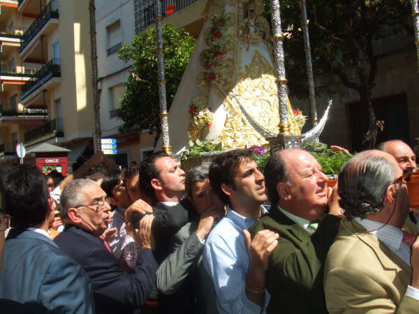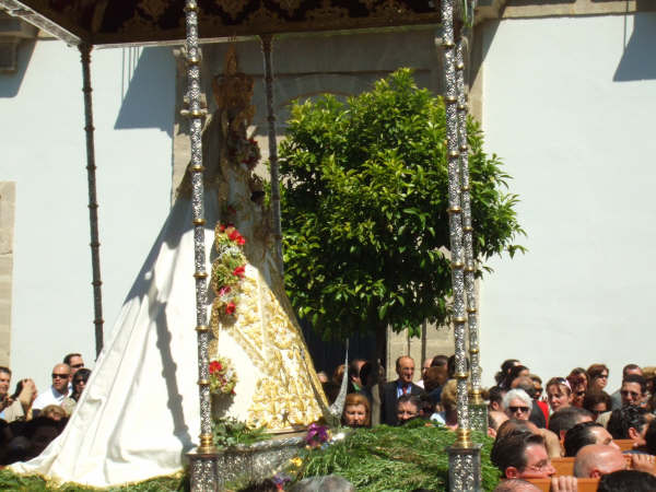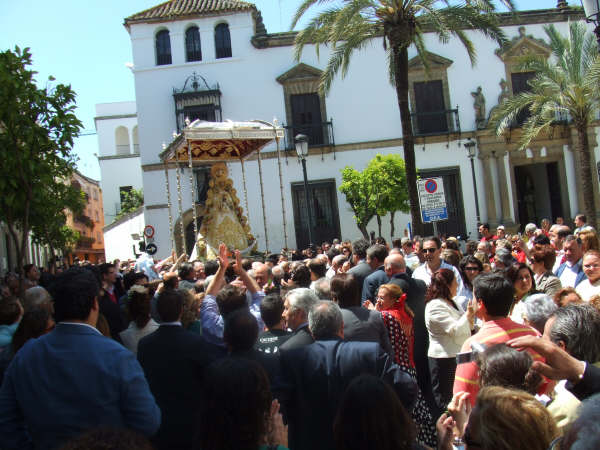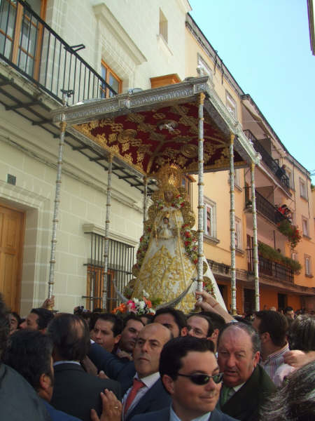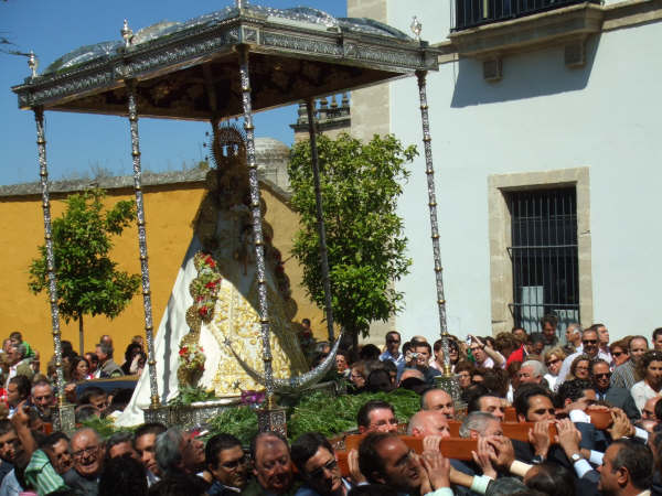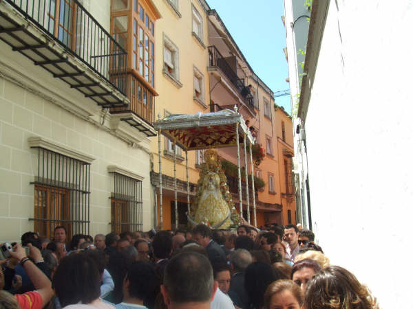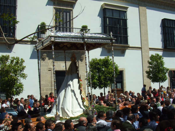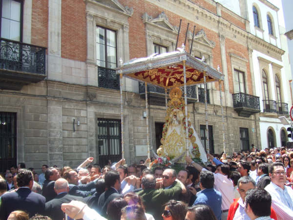 El domingo pasado fue Pentecostés en Jerez de la Frontera. La Virgen salió por sus calles en un paso cedido por la Hermandad de Sanlucar, Madrina de la hermandad Jerezana, que cumplia 75 años justo ayer, día de las Madres… y que mejor regalo que pasearla por las calles.