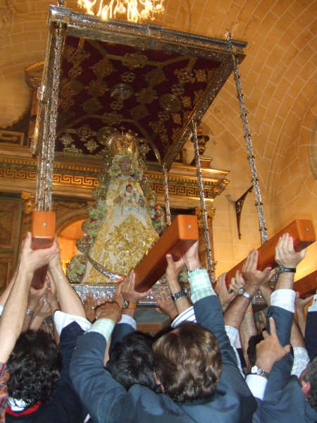 Con el permiso de Almonte, se hizo una procesion extraordinaria, con la Virgen portada a hombros de jerezanos, que cantaban sevillanas y vitores como si la Virgen estuviera en el Real. Ejemplar la respsuesta del puelo de Jerez a la llamada de la Virgen del Rocío.