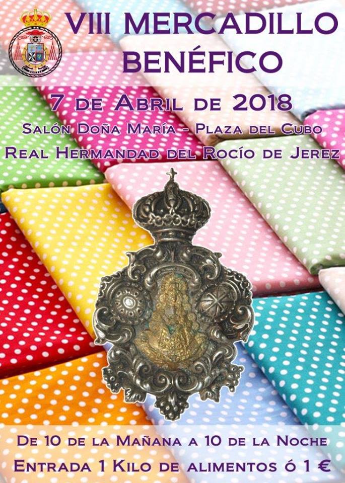 El próximos día 7 de abril de 2018, tendrá lugar la celebración de nuestro anual MERCADILLO BENEFICO DE LA HERMANDAD DEL ROCIO DE JEREZ DE LA FRONTERA, a beneficio de la Bolsa de Caridad “El Pastorcito Divino”.