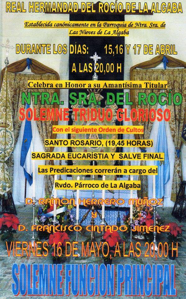 La Hermandad de La Algaba celebra Solemne Triduo durante los días 15,16 y 17 de abril.