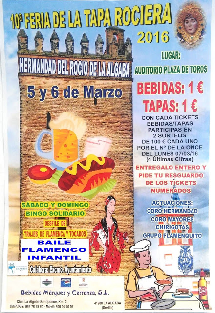 La Hermandad de La Algaba organiza la X Feria de la Tapa Rociera para los días 5 y 6 de marzo de 2016.