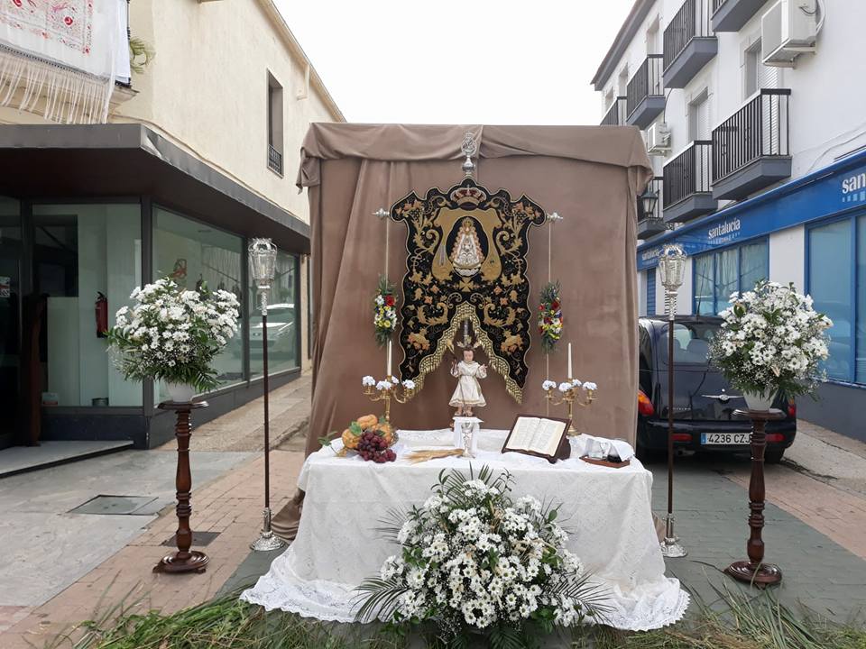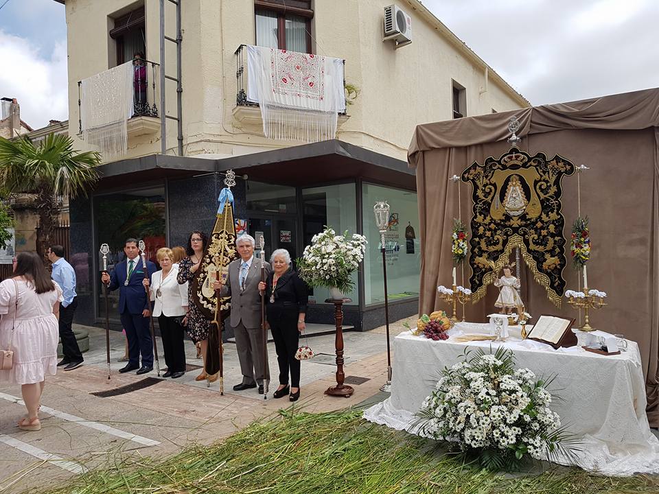 Hoy día del Corpus Christi en La Carolina nuestra Hermandad a montado como todos los años el altar rociero para esperar a Jesús Sacramentado y nuestra participación en la procesión con miembros de nuestra Junta de Gobierno.
