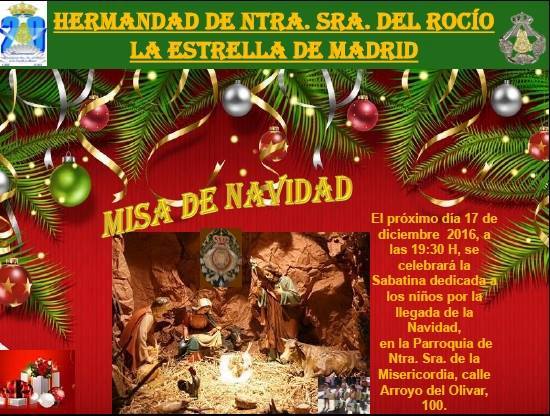 La Hermandad de La Estrella celebra su Misa de Navidad el 17 de diciembre de 2016