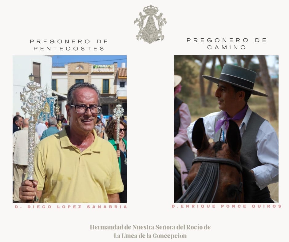 En reunión de la junta de gobierno de la Hermandad de Nuestra Señora del Rocío han designado a las personas encargadas de ofrecer el pregón de pentecostés y el del camino 2024. Don Diego López Sanabria, ha sido designado para realizar el Pregón de Pentecostés en nuestra ciudad. Don Enrique Ponce Quiros, designado pregonero del camino 2024.
