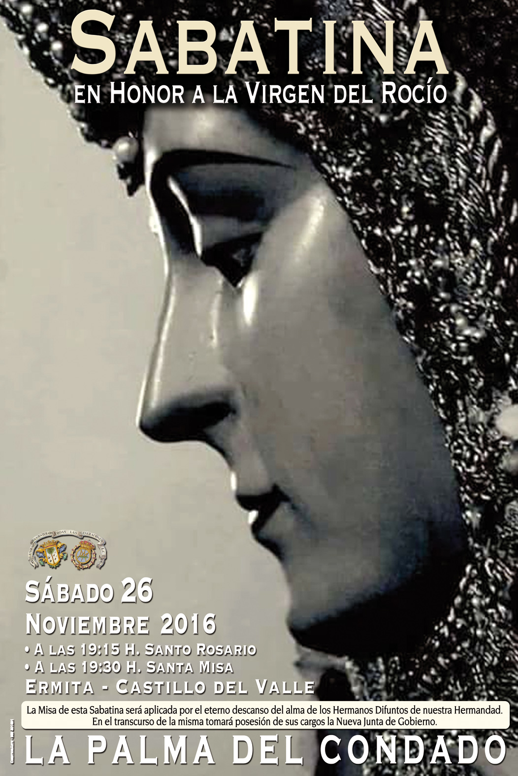 Según marcan nuestras Reglas, la Sabatina que celebraremos en la Ermita del Valle el próximo sábado, día 26 de este mes de noviembre a las 19’30 horas, será aplicada muy especialmente por el eterno descanso de las almas de todos nuestros hermanos fallecidos en el transcurso de este año.