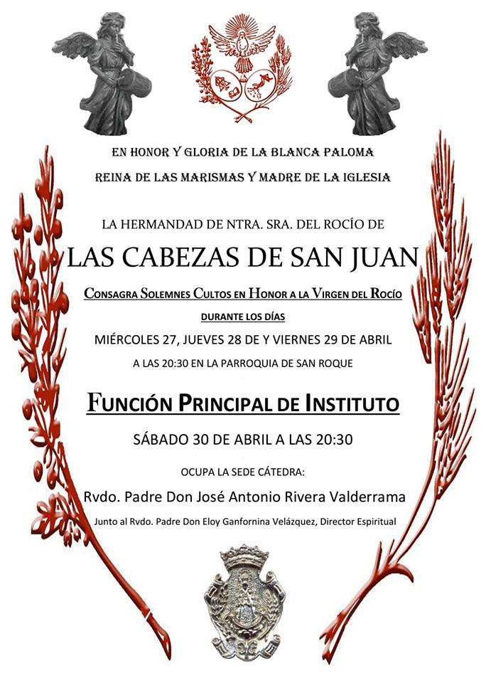 La Hermandad de Las Cabezas de San Juan celebra Solemnes Cultos Rocío 2016 durante los días 27,28 y 29 de abril.