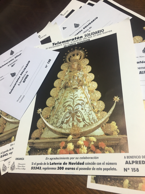El próximo día jueves día 15 desde las 17:00 h hasta las 23:00 horas ininterrumpida la Hermandad de Nuestra Señora del Rocio de Lebrija junto con lebrija Tv. Llevará a cabo el IV telemaraton solidario. Este año será a beneficio de Alpred. Una asociación que ayuda a los niños de familias desectructuradas.