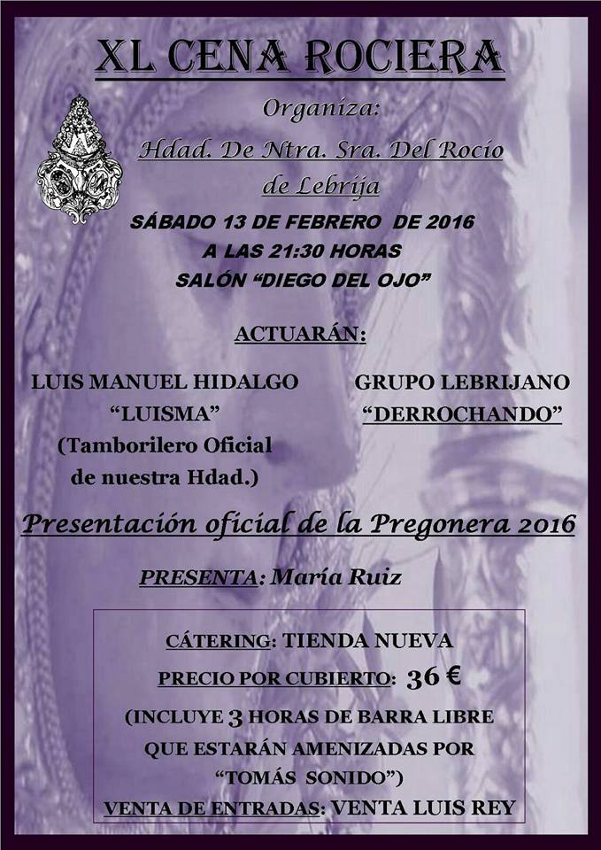 La Hermandad de Lebrija organiza su XL Cena Rociera 2016.