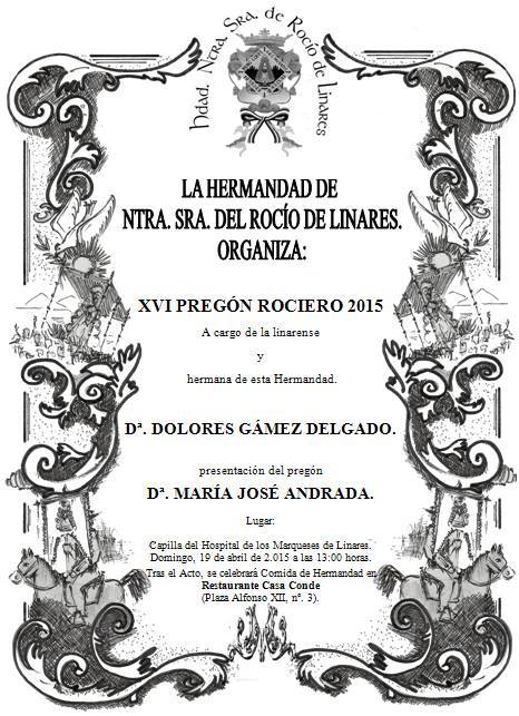 Hermandad de Linares – XVI Pregón Rociero 2015 a cargo de Dolores Gámez.