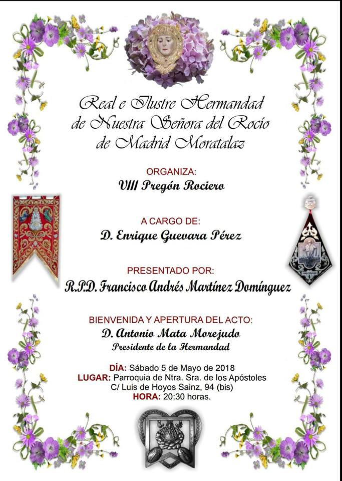 La Hermandad de Madrid Moratalaz nos presenta su VIII Pregón del Rocío 2018 a cargo de D. Enrique Guevara Pérez
