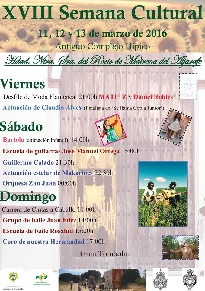 La Hermandad de Mairena del Aljarafe organiza la XVIII Semana Cultural los días 11,12 y 13 de marzo de 2016.