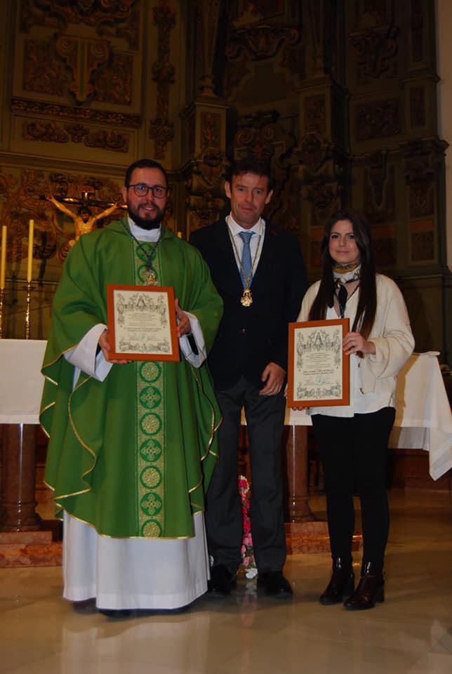 Durante la Misa Sabatina de ayer, sábado 19 de enero, tuvo lugar el nombramiento oficial de Dña. Isabel Lería como Pintora de la Romería 2019 y del Rvdo. D. Salvador Aguilar como Pregonero de la Romería 2019.
