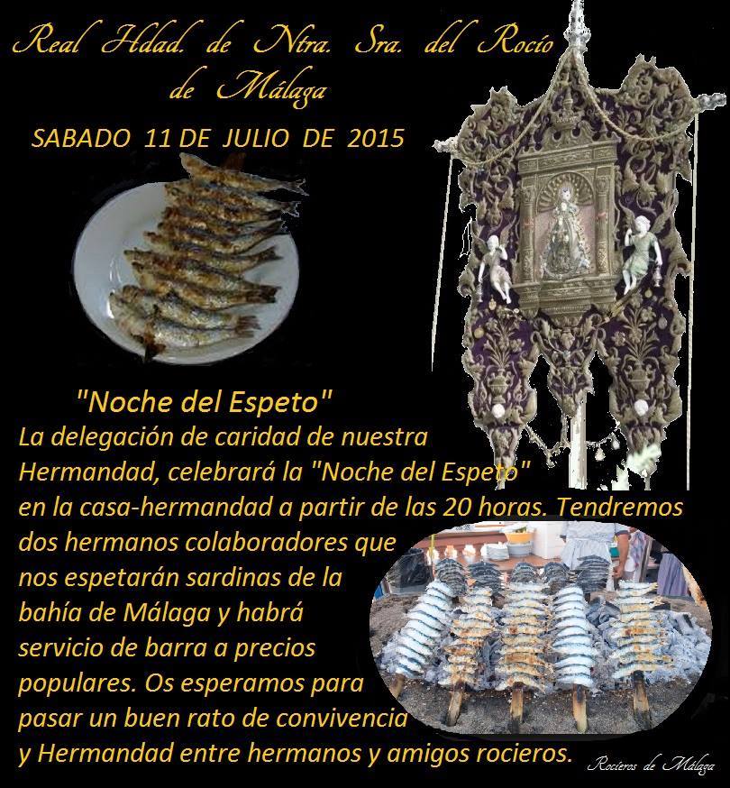 La Hermandad de Málaga organiza la Noche del Espeto el día 11 de julio de 2015.