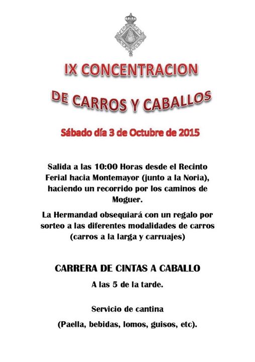 El próximo Sábado día 3 de Octubre, realizaremos la tradicional Concentración de Carros y Caballos en el Coto de Montemayor.