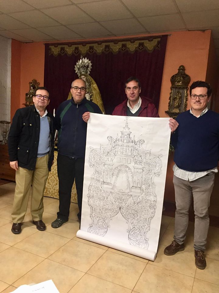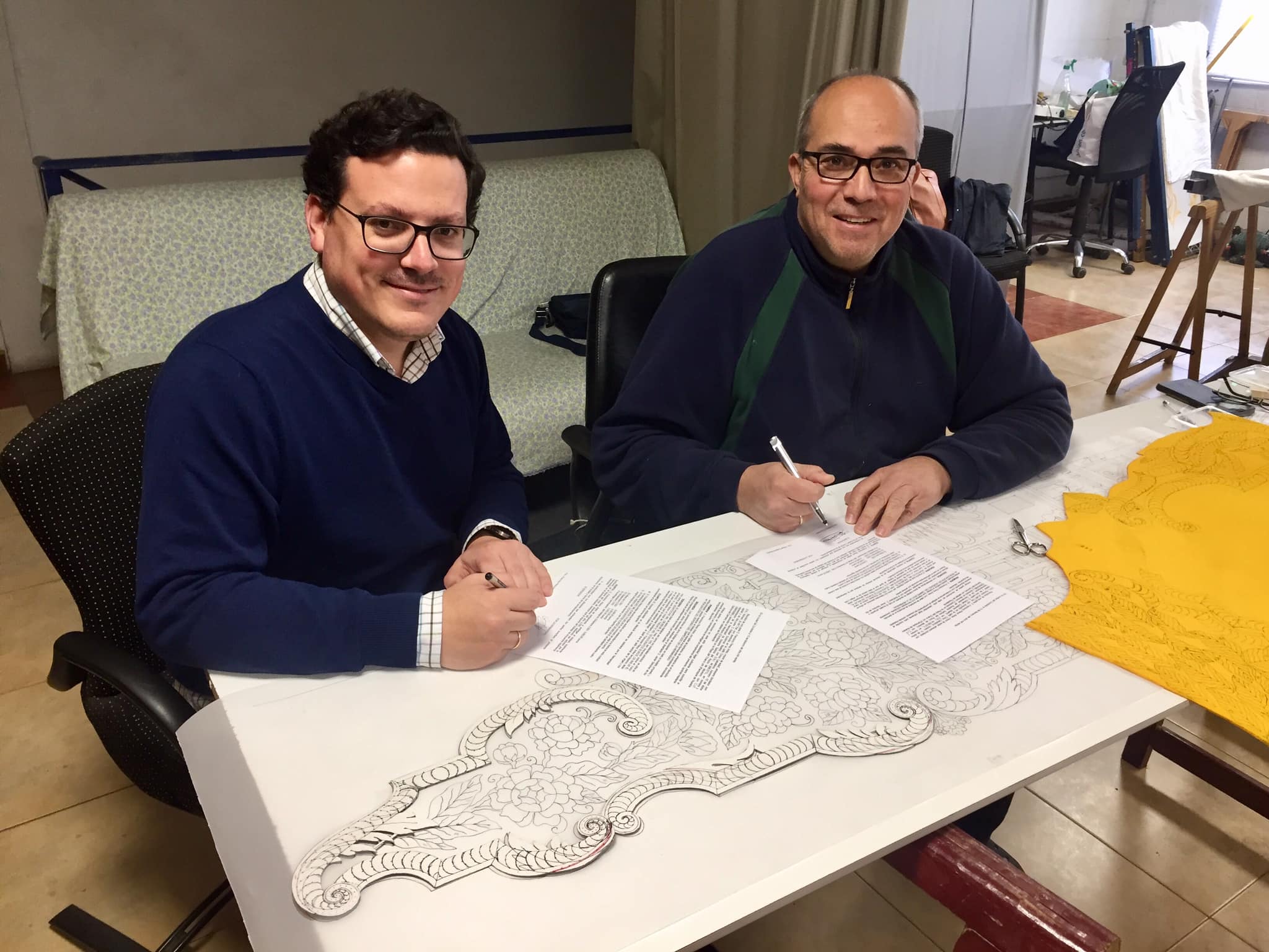 Firmado el contrato de realización ha dado comienzo la ejecución del proyecto de Simpecado de nuestra Hermandad por parte de los talleres de bordado del cordobés Francisco Pérez Artes.