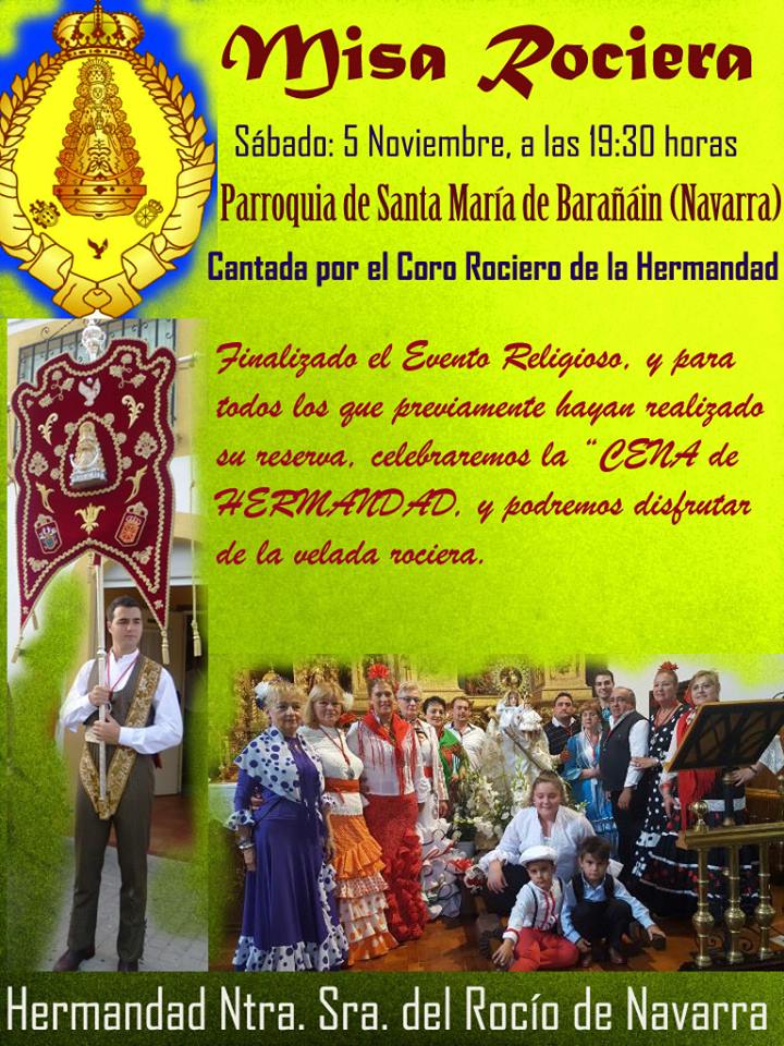La Hermandad de Navarra celebra Misa Rociera el día 5 de noviembre de 2016.