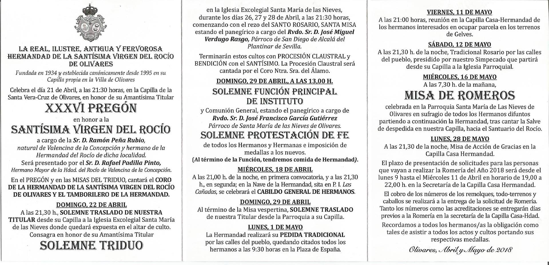 Hermandad de Olivares – Actos y Cultos Rocío 2018