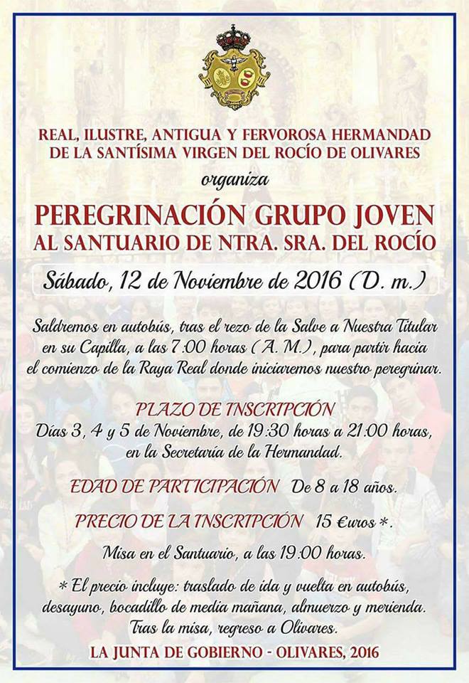 La Hermandad de Olivares organiza su Peregrinación Grupo Joven al Rocío el sábado 12 de noviembre de 2016