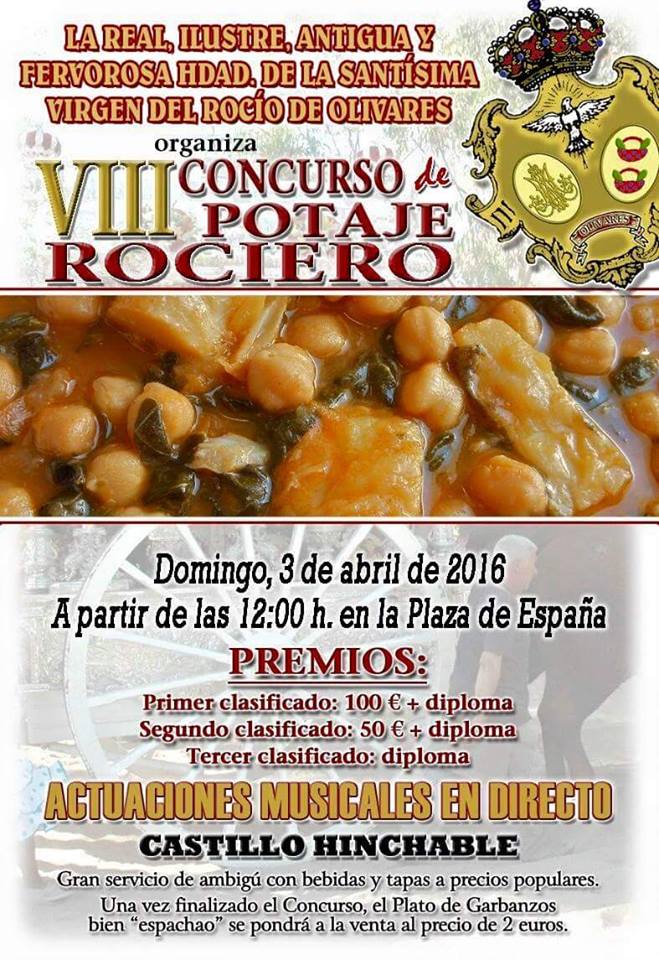 Hermandad de Olivares organiza el VIII Concurso de Potaje Rociero el domingo 3 de abril de 2016.