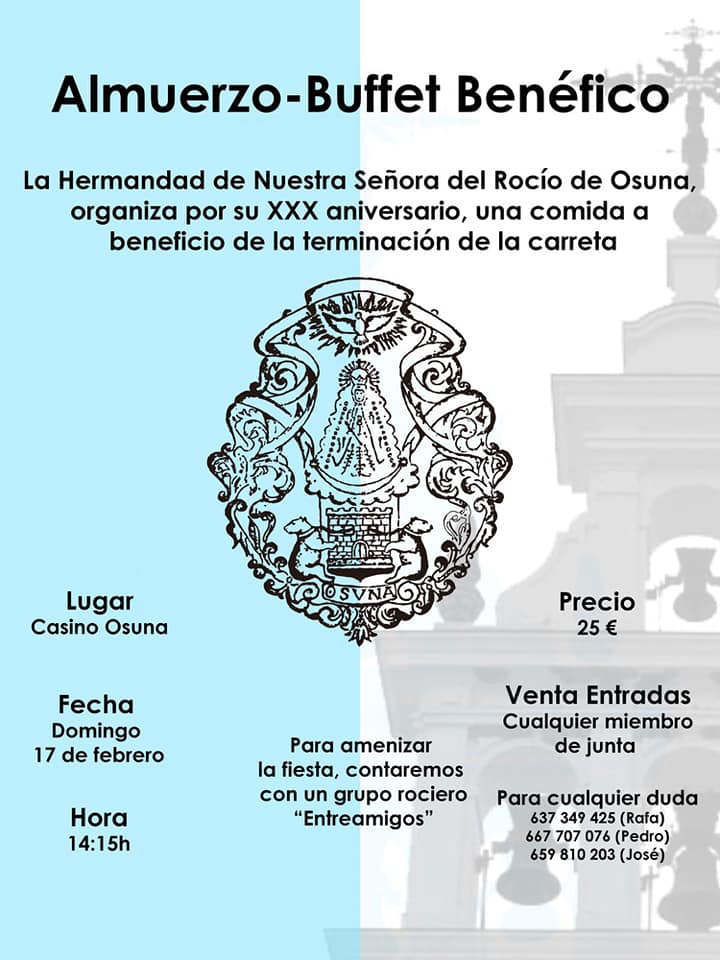La Hermandad de Osuna orgeniza un Almuerzo-Buffet benéfico