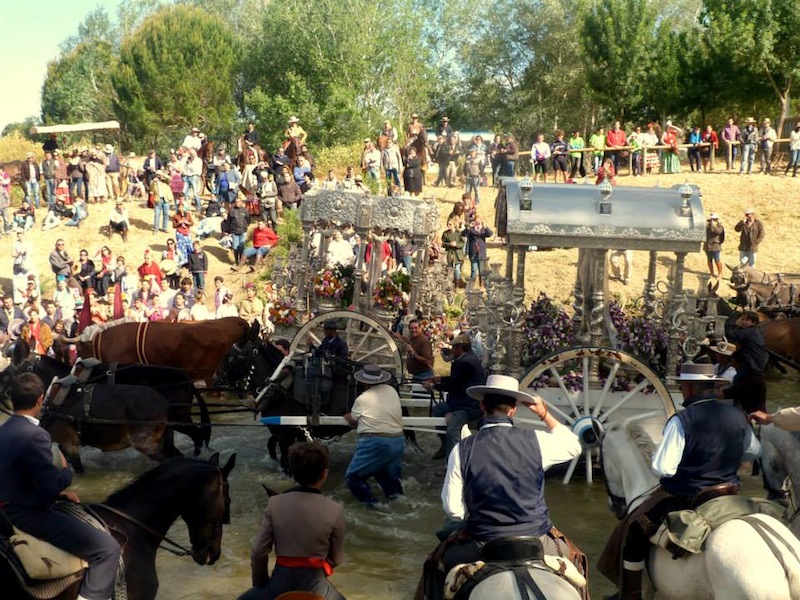 El viernes por la mañana cruzábamos el río Guadiamar a su paso por el Vado del Quema, del pueblo de Aznalzcázar, entrando sobre las 10:00 h., junto con nuestra madrina Écija, Simpecado junto a Simpecado, sintiéndonos ambas Hermandades orgullosos de quienes llevábamos a nuestro lado.