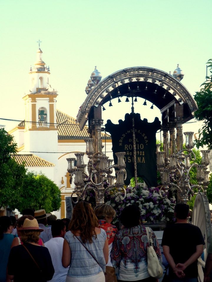 Nuestro Simpecado se presentaba sobre las 5:00 h., ante la Virgen del Rocío, siendo una de las Hermandades con la que más tiempo ha estado la Reina de las Marismas, pudiendo rezarle la Salve, cantarle una Sevillana, gritarle los vivas y gritarle con toda fuerza la rumba que tiene por estribillo “Soy Rociero, Soy Rociero, Soy Rociero”.
