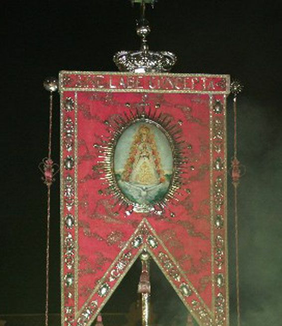 Aprobación de la propuesta de restauracion de El Simpecado de La Hermandad del Rocío de Palomares del Rio. Proceso complejo, pues básicamente se trata en su mayoría de la reproducción del tejido base, siendo éste un brocatel espolinado del S.XVIII, de seda natural tramado con plata con un color original muy excepcional. Se reproducirá de forma fiel tintada, dibujo y textura. A su vez todo el conjunto se pasará a esta nueva base de tejido.