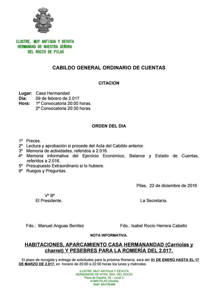 Hermandad de Pilas – Cabildo Ordinario de Cuentas