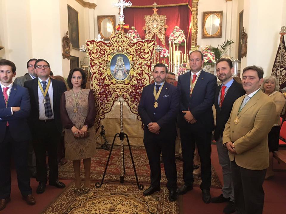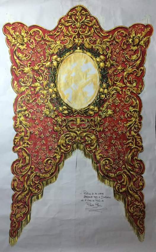 La realización del nuevo Simpecado del Rocío de Puente Genil se ha bordado en el taller de Bordados Santa Clara. Diseño adaptado por el bordador Jose Luis Sanchez Exposito.