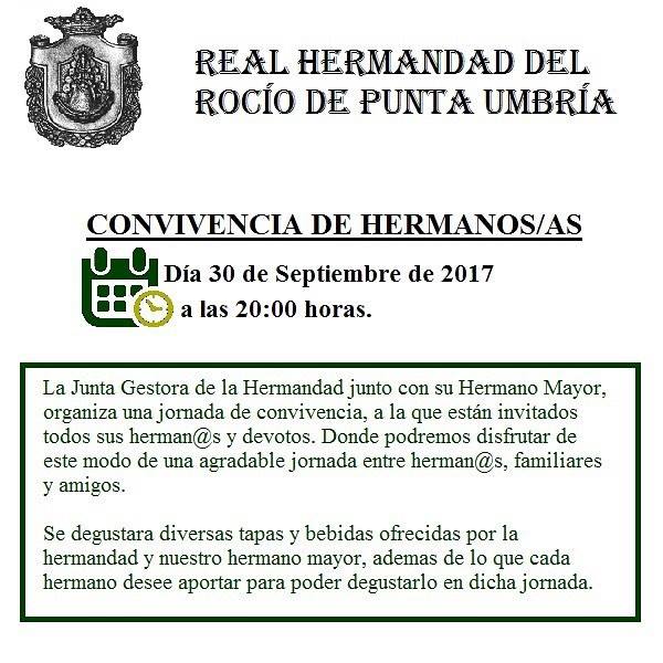 La Hermandad de Punta Umbría organiza una Convivencia de Hermanos el sábado 30 de septiembre de 2017