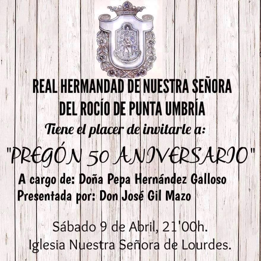 La Hermandad de Punta Umbría organiza el Pregón 50 Aniversario a cargo de Doña Pepa Hernández Galloso.